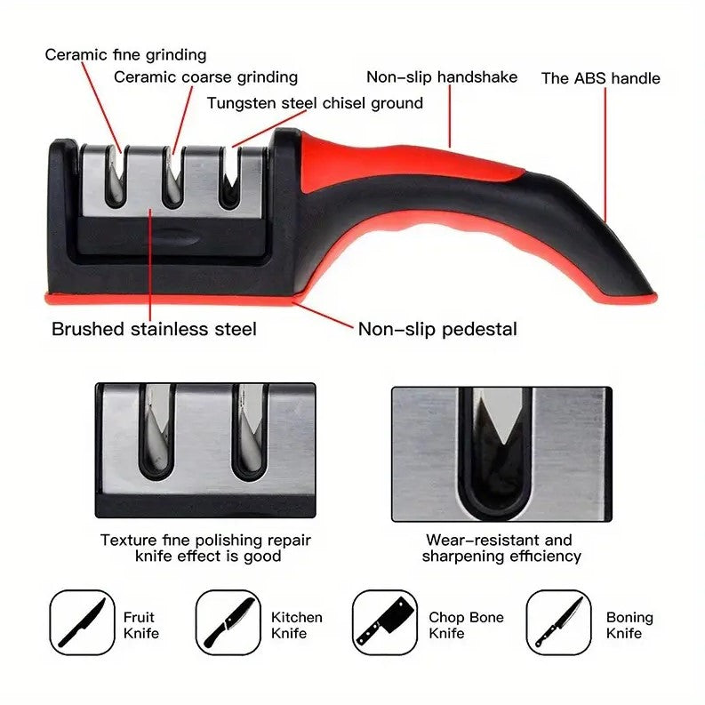 3-Stage Kitchen Knife Sharpener – Professional Sharpening Tool with Non-Slip Handle