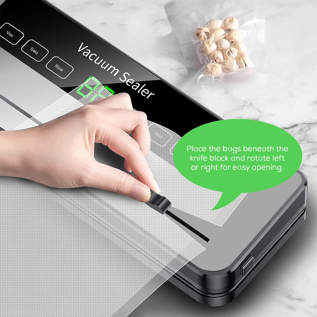 This vacuum sealer is suitable for daily kitchen use, meal preparation, and organized food storage.