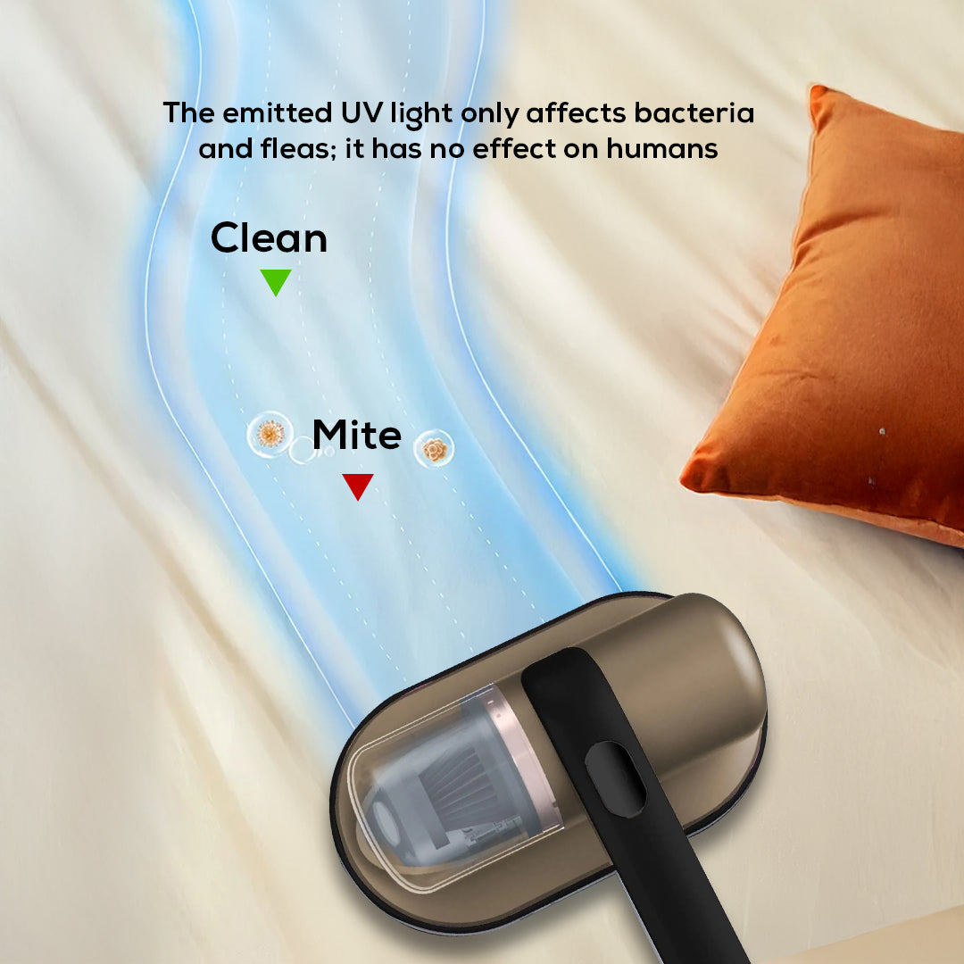 The device uses UV-assisted cleaning combined with strong suction to help lift dust and fine particles from fabric surfaces during use. The vibration-assisted base helps loosen debris from fibers, improving overall cleaning performance.